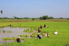 This district lies at the Kaveri delta region, the most fertile region in the state.[4] The district is the main rice producing region in the state and hence known as the Rice Bowl of Tamil Nadu.[5] Kaveri River and its tributaries irrigate the district. Apart from paddy, farmers here grow coconut and sugarcane and it is the largest producer of coconut in Tamil Nadu.Being an agrarian economy, industrial growth in the district is mainly confined to agro-based industries. A large number of Rice mills, Oil mills are spread over the district.