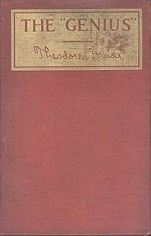 The "Genius" is a semi-autobiographical novel by Theodore Dreiser, first published in 1915. It concerns Eugene Witla, a talented painter of strong sexual desires who grapples with his commitment to his art and the force of his erotic needs. The book sold 8,000 copies in the months immediately following publication but encountered legal difficulties when it was declared potentially obscene.[1] Dreiser's publisher was nervous about continuing publication and recalled the book from bookstores, and the novel did not receive broad distribution until 1923. When The "Genius" was reissued by a different publisher, the firm of Horace Liveright, it immediately sold more than 40,000 copies.[2]