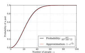The birthday problem can be generalized as follows: given n random integers drawn from a discrete uniform distribution with range [1,d], what is the probability p(n;d) that at least two numbers are the same? (d=365 gives the usual birthday problem.)