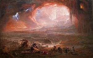 The Destruction of Pompeii and Herculaneum is a large 1822 painting by English artist John Martin. It follows the pattern set by his previous successful painting, Belshazzar's Feast, being another depiction of a dramatic scene from history on a grand scale. The work was lost from sight in the Tate Gallery storerooms soon after it was damaged by the 1928 Thames flood but rediscovered there in 1973 and restored in 2011.