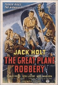 The Great Plane Robbery (aka The Great Plane Robber) is a 1940 crime-adventure B film directed by Lewis D. Collins. Collins was more often associated with directing serials for Universal and Columbia Pictures.[1] It stars Jack Holt, Stanley Fields and Noel Madison. Though typical of the melodramas that Holt made after transitioning from silent screen epics, western and adventure films were his forte. Reviewer Hal Erickson found it ironic that Holt, who in real life had a fear of flying, starred in so many aviation-oriented films.[2] It was written by Albert DeMond from a story by Harold Greene.[3]