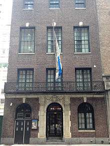 The Grolier Club has had three locations since its founding in 1884. Its first home was rented. It moved in 1890 to a Romanesque Revival building at 29 East 32nd Street (now a designated landmark), and in 1917 to its current home (designed by Bertram Grosvenor Goodhue)[5] at 47 East 60th Street in New York's Silk Stocking District.