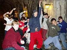 The Hangovers are a men's collegiate a cappella ensemble based at Cornell University. Founded in 1968, they are the official a cappella subset of the Cornell University Glee Club,[1] the oldest student organization at Cornell University.[2] The Hangovers' repertoire consists mainly of popular songs arranged for the ensemble by its members and alumni, but the group also performs traditional Cornell songs,[3] as well as selections from the Glee Club repertoire on occasion.[4]