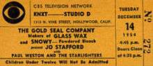 - ↑ Pearson, Howard (February 12, 1954). "Jo Stafford TV Show Sets Debut Friday". The Deseret News. Retrieved March 12, 2011.
