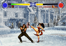 A remake, titled The King of Fighters '94 Re-Bout, was released for the PlayStation 2 in Japan only on December 28, 2004, commemorating the tenth anniversary of the franchise.[23] Re-Bout features the original 1994 game and an enhanced version featuring higher resolution graphics, a Team Edit option feature similar to the later KOF games, the ability to play as Saisyu Kusanagi and Rugal Bernstein, arranged music, new stages and an online versus mode.[24] SNK Playmore commented that they received negative fan feedback regarding the game's simple upscaling and smoothing of character sprites, so they decided to create brand new high resolution sprites for the following games in the series.[25]