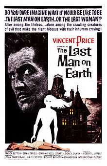 The Last Man on Earth (Italian: L'ultimo uomo della Terra) is a 1964 Italian-American science-fiction horror film based on the 1954 Richard Matheson novel I Am Legend. The film was directed by Ubaldo Ragona and Sidney Salkow, and stars Vincent Price. The script was written in part by Matheson, but he was dissatisfied with the result and chose to be credited as "Logan Swanson". William Leicester, Furio M. Monetti, and Ubaldo Ragona were the other writers.