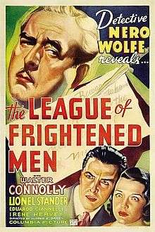 The League of Frightened Men is a 1937 mystery film based on the second Nero Wolfe novel by Rex Stout. Directed by Alfred E. Green, the Columbia Pictures film stars Walter Connolly as Nero Wolfe, a role played by Edward Arnold in the previous year's Meet Nero Wolfe. The role of Wolfe's assistant Archie Goodwin was reprised by Lionel Stander.