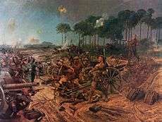 On 2 April 1917, the 2nd Manchesters attacked Francilly-Selency, in which C Company captured a battery of 77 mm guns and a number of machine-guns. Two paintings were made of this action by the military artist Richard Caton Woodville.[29] Later in the month, the Manchester Regiment fought in the Arras Offensive.[30]