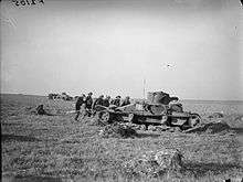 The 2nd Battalion, under the command of Lieutenant Colonel Donald Butterworth, was sent to France shortly after the outbreak of war in September 1939 as part of the 2nd Infantry Brigade (alongside the 1st Loyal Regiment and 1st Gordon Highlanders), 1st Infantry Division and was part of the British Expeditionary Force (BEF), and was involved in the battles of France and Belgium before eventually being evacuated from Dunkirk on 1 June 1940.[78] Following that, the 2nd Battalion spent years on home defence in the United Kingdom preparing for a possible German invasion of England which never arrived. The battalion remained in the United Kingdom until 1943 when, still as part of 1st Infantry Division, it sailed to North Africa and took part in the campaign in Tunisia, British First Army.[76] The battalion did not participate in the invasion of Sicily or the initial invasion of Italy but was one of the lead units in the Anzio landings in January 1944, under command of US Fifth Army, where they suffered extremely heavy casualties.[79] On 7 February the battalion suffered 323 casualties attempting to capture Buonriposo Ridge which they captured but were forced to surrender the ridge after expending their ammunition.[80] By May, following Operation Diadem, the battalion had absorbed eight drafts of replacements.[79] Now fighting as part of the British Eighth Army, the 2nd Battalion continued to serve in Italy, fighting around the Gothic Line, until January 1945 when the battalion and the rest of 1st Infantry Division were transferred to Palestine.[77]