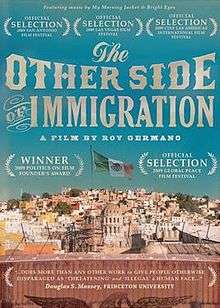 The Other Side of Immigration is a 2010 documentary film directed by Roy Germano that explores why so many people leave the Mexican countryside to work in the United States and what happens to the families and communities they leave behind. The film is based on Germano’s interviews with over 700 households in Mexico, which he carried out while doing Ph.D. research on remittances at the University of Texas at Austin.[1][2][3] The Other Side of Immigration is distributed by Team Love Records, a company founded by musician Conor Oberst.[4]