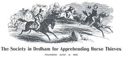 - 1 2 Jerry Taylor (December 6, 1985). "EVER VIGILANT IN DEDHAM ON THE LOOKOUT FOR HORSE THIEVES SINCE 1810, GROUP HAS NOW EASED OFF A BIT". The Boston Globe.