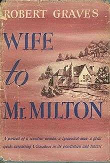 Geoffrey Wall concluded that Graves's Wife to Mr. Milton is 'a relentlessly effective satire on masculine self-regard.'[2] Matthew Adams has recently written, 'Ignoring the question of whether Milton had justly or unjustly been defamed, E.M. Forster pronounced Wife to Mr Milton a thumping good read yet remained concerned that Graves's portrait had depicted only half of the man, [... ]'[3] It has been noted that the English poet W.H. Auden liked to quote from Graves's Wife to Mr. Milton: "They tune the strings a little sharper at Cambridge."[4]