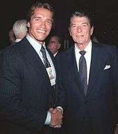 Schwarzenegger with President Ronald Reagan two months before The Terminator's premiere in 1984.
