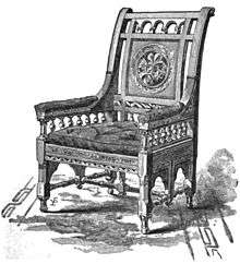 In 1879, years after the publication of "The Village Blacksmith", the local schoolchildren in Cambridge, Massachusetts presented Longfellow with an armchair made from "the spreading chestnut tree" in the poem which was recently cut down.[9] Under the cushion of the chair is a brass plate on which is inscribed, in part: "This chair made from the wood of the spreading chestnut-tree is presented as an expression of his grateful regard and veneration by the children of Cambridge".[10] From then on, Longfellow made it a rule to allow schoolchildren to be admitted into his study to see the chair.[11] He also composed a poem to commemorate his gift called "From my Arm-Chair". The site on Brattle Street in Cambridge where the tree once stood is now designated with a stone marker.[12]