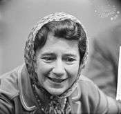 Another lauded performance was that of Peggy Ashcroft as Margaret, whose role is usually heavily cut, and often eliminated entirely from both 1 Henry VI and, especially, Richard III. Margaret is the only character to appear in all four plays (unless one counts the Ghost of Henry VI in Richard III), and Ashcroft relished the chance to develop the character over the entire production, arguing that Margaret is "a Dark Lady if ever there was one - and prototype for Cressida, Cleopatra, Lady Macbeth - was Shakespeare's first "heroine" - if such she can be called [...] It takes four plays to make her one of the great female characters in Shakespeare - and the full-length portrait has been seen only in The Wars of the Roses cycle - but she has facets that are not touched on in any other."[16] Ashcroft saw the scene from 2 Henry VI where she appears on-stage carrying the head of her lover, the Duke of Suffolk, as pivotal to both the character's development and her own understanding of Margaret; "I came to realise why this scene was of paramount importance - for later in what is one of the greatest and certainly most horrific scenes [...] when Margaret wipes the blood of York's son on the Duke's face [...] I found that seemingly impossible bestial act to be credible as the result of the violence that has been perpetrated on her lover."[34]
