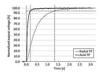The rise time for axial sensors is usually longer than for radial sensors since the axial sensors possess lower thermal mass and thermal resistance.[8] The difference can amount to a factor of 5 to 10 and is shown in Fig 5.[8]
