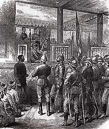 ![]() The nominal surrender of the Burmese Army, 27 November 1885, at Ava. | |||||||