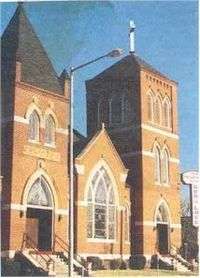 Completed in 1902, the church sanctuary and chapel remain essentially the same today. Only the corner steeple/tower is different, as the original was severely damaged by lightning. (circa 1930's) The tower was refitted with a less steep roof line, giving a slightly different appearance than the side tower which still maintains the original sharp-angled roof.