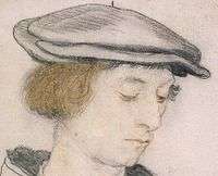 Gloucestershire was a centre of the wool and cloth industries, and the city of Gloucester became a nexus for this trade. One branch of the wool related trade was cap manufacturing, consisting in the spinning and knitting of caps for headwear. Headwear was of course an essential part of normal apparel, up to the late 20th century. Bell may have made the Tudor beret style flat-cap worn by members of higher society (as illustrated) or possibly the coarser style cap, later known as the "Statute Cap" which was the model approved by the 1571 statute making the wearing of caps compulsory on Holy Days, a measure designed to support the manufacturing industry. Bell Snr. was one of the largest manufacturers in the city, rivalled only by John Falconer (d. 1545), thrice Mayor of Gloucester. They employed large numbers of people, Bell up to 300.[5] On his purchase of the Monastery of the Blackfriars in 1539, he transformed it into a cap factory, which was noticed contemporaneously by John Leland the antiquary who remarked "The Blakefriers stood withe in the towne not far from the castle. This hows is by one Bell made a drapinge howse."[6] He may therefore also have made general drapery, and gloves, as is sometimes suggested. Bell's period was the high-water mark for the trade, which fell off rapidly from around the time of his death, in the 1560s. From his business he became the wealthiest citizen of Gloucester.[7]