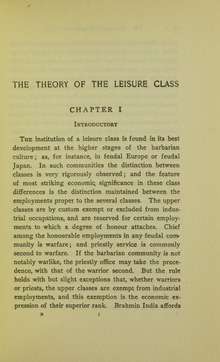 - — (1899). The Theory of the Leisure Class. New York: MacMillan. Also at Project Gutenberg