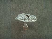 Thrinaxodon was a small synapsid roughly the size of a fox,[1] possibly covered in hair. The dentition suggests that it was a carnivore, focusing its diet mostly on insects, small herbivores and invertebrates. Their unique secondary palate successfully separated the nasal passages from the rest of the mouth, allowing the Thrinaxodon to continue mastication without interrupting to breathe, an adaptation important for digestion.[3]