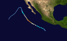 The 2004 Pacific hurricane season had 17 tropical cyclones, of which 12 became named storms, 6 became hurricanes, and 3 became major hurricanes (Category 3 or higher).[1][2] This timeline documents all the storm formations, strengthening, weakening, landfalls, extratropical transitions, as well as dissipation. It also includes information which was not operationally released, meaning that information from post-storm reviews by the National Hurricane Center, such as information on a storm that was not operationally warned on, have been included. The season officially began on May 15, 2004 in the eastern Pacific proper (June 1, 2004 in the central Pacific) and lasted until November 30 that same year.[3] Areas east of 140°W are under the purview of the National Hurricane Center (NHC); the area between the International Date Line and 140°W, or the central Pacific, is under the purview of the Central Pacific Hurricane Center (CPHC).