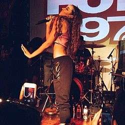 In 2007, Tinashe joined girl group The Stunners, founded by Vitamin C. Her bandmates were friends Marisol Esparza, Allie Gonino, Hayley Kiyoko, and Kelsey Sanders.[13] Six months after their formation, the group signed with Columbia Records. The Stunners recorded a single that was to be used for the iCarly soundtrack; however, the single was never released. In 2009, the group left Columbia Records[14] and signed a production deal with Lionsgate Entertainment, who also produced a scripted television show pilot based on the group for MTV.[14][15] On March 18, 2009, they released a single, "Bubblegum", on iTunes, along with the official video. In October, the group released a 5-song EP, influenced by artists such as Madonna, Gwen Stefani, and Rihanna.[16] The music video for their promo single, "We Got It", was released on February 22, 2010.[14]