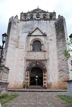 Towering over everything else in the town, is the former monastery of San Juan Baustista (John the Baptist). This monastery is part of the series of monasteries near the Popocatepetl volcano which was declared a World Heritage Site in 1994.[8][9] Today only the church portion retains its original function and serves as the parish church for the municipality.[10] The patron saint of the town is John the Baptist, whose feast day is celebrated on 24 June.[11]