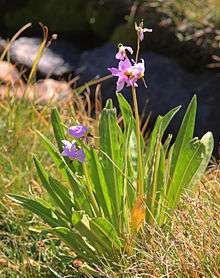The wildflower show begins in late June when the Jeffrey's shooting star and white marsh marigold bloom in the wet meadows and riparian areas. Newberry's knotweed is an early bloomer on the well-drained slopes above the lake. Then, elephanthead and other alpine plants begin to bloom in the meadows and along the lake shore.[12][13]