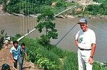 In the oil town Lago Agrio of Ecuador, Toni finds a partner in Walter Yánez, a welder and mechanic.[4] Over the next seven years the two friends build another 82 bridges throughout Ecuador - always with the help of the local population – as well as 10 bridges in Colombia, in the wake of the 1994 Páez River earthquake at the Nevado del Huila volcano.[5]