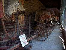 Directly behind the Gate of Salutation, on the northeast side, the imperial carriages are temporarily exhibited in the former outer stables and harness rooms. This is a relatively low building, altered in 1735 when a new ceiling was installed. Its roof is one of the few undomed roofs to retain its 15th-century shape. Many carriages were destroyed in a fire in the previous stables in the late 19th century. The carriages on display are some of the sultan's carriages, including the state carriage, the carriage of the Valide Sultan (Queen Mother), and minor court carriages. Some of the carriages were foreign-made vehicles that were imported for the court. Located next to the carriages to the north are the extensive palace kitchens.