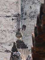 Iron was not worked in the Mesoamerican period, with its mining and working introduced by the Spanish.[31] Exploration of the metal was initially banned to protect the industry in Spain, but as tools made from the metal were essential for exploration and conquest, the prohibition was soon ignored.[12][32] Initially the items were purely utilitarian such as tools, locks, horseshoes and tools.[31][33] Later in the colonial period, iron began to be used in other ways, including decorative elements in churches and mansions such as railings and balconies.[12] The height of traditional Mexican ironworking was in the 17 and 18th centuries.[31]
