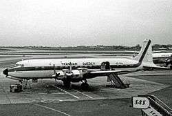 Freight flights on behalf of SAS were begun to cities such as Malmo, Copenhagen, Hamburg, Amsterdam and Paris. In 1967 Boeing 727-134s were acquired but those were not kept very long. But a year later Transair was bought by the Svenska Handelsbank and financing was introduced to acquire once again jet aircraft. Shortly thereafter SAS took a majority holding in Transair Sweden and the airline was kept flying independently under its own colors taking tourists to Spain, the Canary Islands and other Mediterranean destinations. In 1981 SAS sold all the 727s and the employees were integrated into SAS.[1]