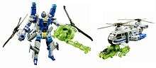 Transformers: Power Core Combiners is a 2010 toy line by Hasbro (Takara Tomy in Japan as Transformers: United EX) that combines elements of Combiners, Targetmasters and Mini-Cons. The 5-pack figures come with drones that combine with the main figure, while the 2-pack figures come with Mini-Cons that transform into their weapons; the figures can also combine with the drones in different combinations.[1]