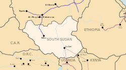 South Sudan has 248 kilometers (154 mi) of narrow-gauge, single-track railroad that connects Babonosa (north Sudan) with Wau. The line was damaged in the civil war, in which several parts of it were mined; the line was fully rehabilitated with United Nations funds.[2]