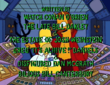 - 1 2 3 4 O'Brien, Conan; Weinstein, Josh; Oakley, Bill; Daniels, Greg; McGrath, Dan; Canterbury, Bill; Silverman, David (1993-10-28). "Treehouse of Horror IV". The Simpsons. Season 04. Episode 05. Fox.