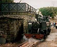 Unskilled labourers and soldiers could quickly assemble prefabricated 5-meter (16 ft 5 in) sections of track weighing about 100 kilograms (220 lb) along roads or over smooth terrain. The track distributed heavy loads to minimize development of muddy ruts through unpaved surfaces. Small locomotives pulled short trains of 10-tonne (22,000 lb) capacity cars through areas of minimum clearance and small-radius curves. Derailments were common, but the light rolling stock was relatively easy to rerail.[2] Steam locomotives typically carried a short length of flexible pipe (called a water-lifter) to refill water tanks from flooded shell holes.