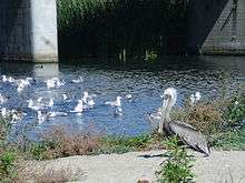 During periods of strong rain, Trestles park has a stream that runs through its center and empties into the ocean.[6] Usually you find the stream flowing during winter, and spring which are the seasons with the most rain in Southern California. The stream does not usually contain much animal life, as it dries up fairly quickly without a steady water source. The stream does create a small pool which contains mainly tadpoles. When the stream dries up above ground, an underground water flow still exits into the ocean, just not through a river delta. It is an interesting phenomenon to see the river drain from under the sand into the ocean.