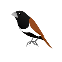 The tricoloured munia is a small gregarious bird which feeds mainly on grain and other seeds. It inhabits wet grassland habitats. It may also be found in tropical lowland moist forest habitats.