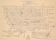 The ten block Town of York (later the St. Lawrence Ward of Toronto) was laid out by Governor Simcoe in 1793[1] with its southern most street, Palace Street (now Front Street), following the shoreline to the west where it entered Fort York on the west side of the Garrison Creek[2] This original town extended from Jarvis Street to Parliament Street (now Berkeley) with the rest of the area south of Lot Street (now Queen Street) as the 'Garrison Common' (open government land); north of Queen Street were 'farm lots'. North of about Palace Street (Front Street) and Crookshank Lane (Bathurst Street), a burial ground was established for the fort. Just before 1800 the town was extended with a 'New Town' (now the Financial District) in the west using larger lots than in the 'Old Town' and extending from Jarvis Street to Peter Street.[1] There was a military hospital at Niagara Street and Tecumseh across from Fort York.