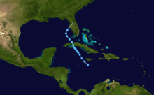 On occasion, the convection of the system would flare up, and in the early morning hours of November 3, the Naval Air Station at Boca Chica, Florida reported winds of 50 mph (80 km/h), which would mean the depression may have attained tropical storm status. A similar report was filed at the Air Force Station at Cudjoe Key. After another reconnaissance flight was sent out to study the system, and recorded that surface area temperatures had dropped, the flight-level winds had reached 92 mph (147 km/h) and the surface area pressure had reached 998 millibars (29.47 inHg).[3] In the evening and overnight hours of November 3, the tropical depression continued to the northeast, making landfall in Florida at a location near Tampa Bay. The depression crossed Florida, weakening significantly, and becoming extratropical. After emerging from land in the Atlantic Ocean on November 5, the depression had become a low pressure area once again and was last spotted that day near the Carolina Capes.[4]