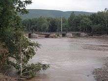 The eastern part of Lycoming County sustained major flood damage associated with the remnants of Lee. The boroughs of Picture Rocks and Hughesville and village of Glen Mawr had to be evacuated due to flooding on Muncy Creek.[71] A bridge at the eastern end of Pennsylvania Route 973 over Loyalsock Creek collapsed on September 8. The Lycoming Valley Railroad bridge over Loyalsock Creek in Montoursville was heavily damaged by flooding, rendering it unusable. Heavy rain from the remnants of Tropical Storm Lee raised the creek "higher than anything we've seen in recorded history", according to a county official.[72] Replacing the destroyed PA 87 bridge and repairs to the damaged railroad bridge and Pennsylvania Route 87 were estimated to cost more than $25 million.[73]