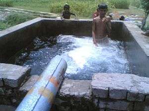 A small reservoir of water is made at the outlet of the tube well. This reservoir is used for different usage of water by the local population.
