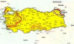 - ↑ "The liberation of Sarikamis and Kars formed a part of our Eastern Operation, and as is known this operation was against Armenians" - D. Akbulut, The liberation of Sarikamis and Kars According to the Albayrak Newspaper, in "Kars and Eastern Anatolia in the Recent History Symposium", Ankara 1994.