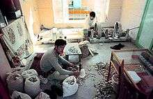 This deposit is blue naturally and turns green when heated due to dehydration. It is restricted to a mine-riddled region in Nishapur, the 2,012-metre (6,601 ft) mountain peak of Ali-mersai which is tens of kilometers from Mashhad, the capital of Khorasan Province, Iran. A weathered and broken trachyte is host to the turquoise, which is found both in situ between layers of limonite and sandstone and amongst the scree at the mountain's base. These workings are the oldest known, together with those of the Sinai Peninsula.[5] Iran also has turquoise mines in Semnan and Kerman province.