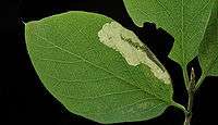 The caterpillar larvae feed on honeysuckle (Lonicera). They are leaf miners, tunnelling inside the leaves of the food plant to avoid predators.