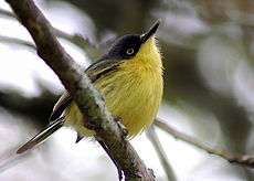 A number of species previously included in this family are now placed in the family Tityridae (see Systematics). Sibley and Alquist in their 1990 bird taxonomy had the genera Mionectes, Leptopogon, Pseudotriccus, Poecilotriccus, Taenotriccus, Hemitriccus, Todirostrum and Corythopis as a separate family Pipromorphidae,[4] but although it is still thought that these genera are basal to most of the family, they are not each other’s closest relatives.[4]