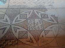An Aramaic mosaic inscription in honor of the donors reads: "May he be remembered for good Yudan son of Isaac the Priest and Paragri his daughter, Amen, Amen."[6]