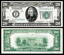 | Wikimedia Commons has media related to 20 United States dollar banknotes. |