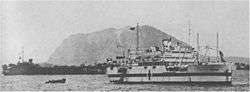 When the Japanese attacked Pearl Harbor in December 1941, Chaumont was on one of her regular voyages from Hawaii to Manila, carrying sailors, civilian workmen, and cargo that included munitions.[3][4][5] She was diverted as part of the "Pensacola Convoy" to Brisbane then, after a period of reloading the convoy's men and cargo, she proceeded to Darwin, Australia with Navy supplies where she discharged her passengers and cargo on 5 January 1942.[3][6][7][5] After returning to Brisbane she went to Sydney then Wellington, New Zealand and Balboa before returning to San Francisco on 29 March 1942.[3] After two runs to Pearl Harbor, the now elderly transport was assigned to service between Seattle and Alaska, bringing men and supplies to assist in the defense of the Aleutians. Selected in March 1943 for conversion to a hospital ship, Chaumont was decommissioned in August for conversion at Seattle.